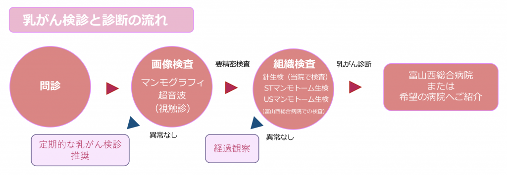 ブレストケア受付・・・2階ブレストケア受付で診察券を確認させていただきます。初めて来院される方は、1階受付で初診手続き後に2階ブレストケア受付までお越し下さい。富山市及び立山町の受診券をお持ちの方は必ずご持参下さい。 受診券をお忘れになると検査が受けられなくなることがありますのでご注意ください。