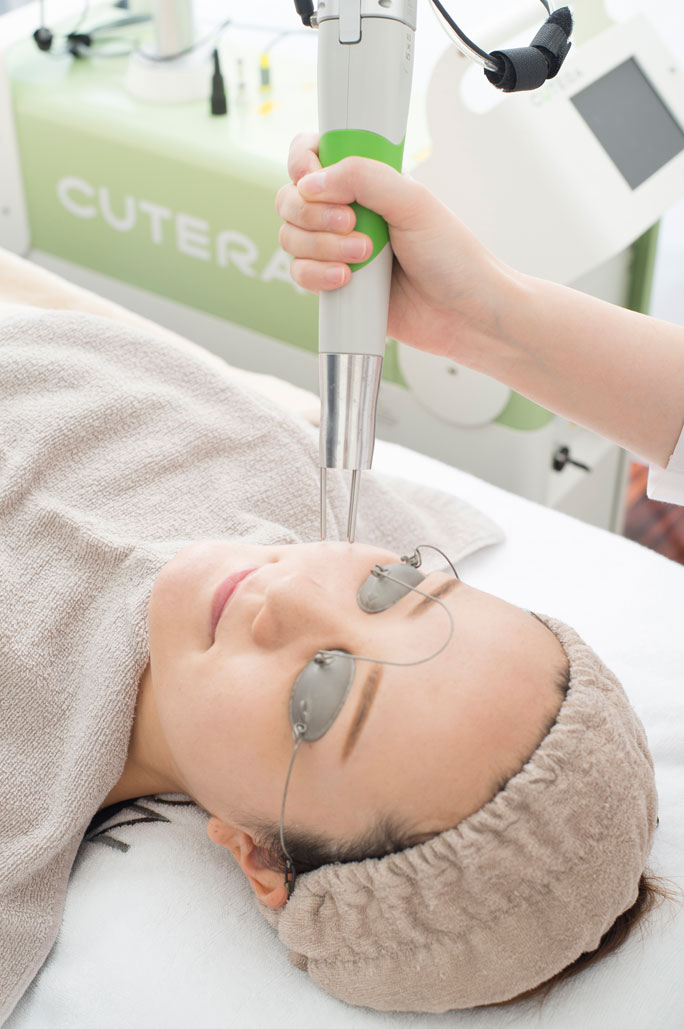 ゴムで弾かれた様なパチンとした痛みがあります。施術前に麻酔クリームで表面麻酔をすることをお勧めします。